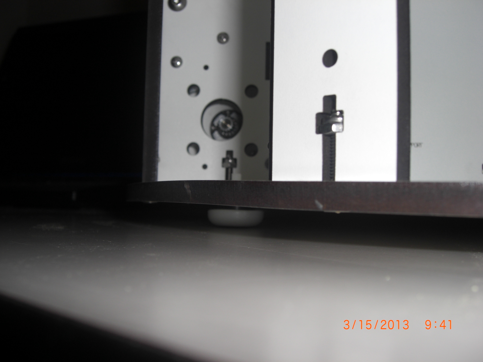 there is one spot that is out of place, shown in the picture, it seems this foot peg isn't touching the table, all the others are. its not the table because to matter where i rotate it. It doesn't touch. there seems to be a slight bow here at this spot. I noticed this before during the assembly but i didn't think this mattered. Everything is snug up to the partitions.mhackney wrote:And what about the bottom, is it flat?