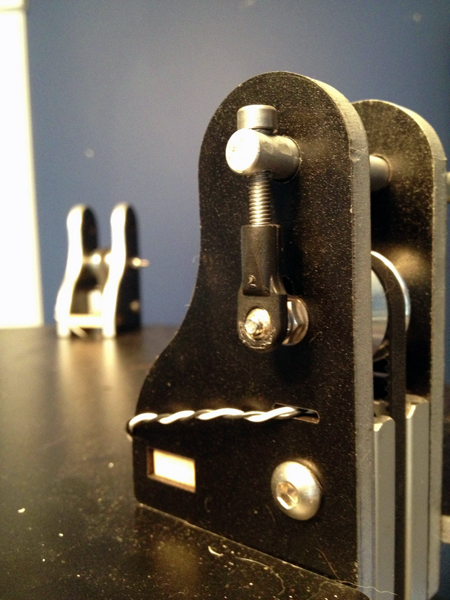 here is the other idea, the adjusting screw would go through a rod, in the top holes. I might use 4-40 studs instead of screws and have an adjusting nut at the top.