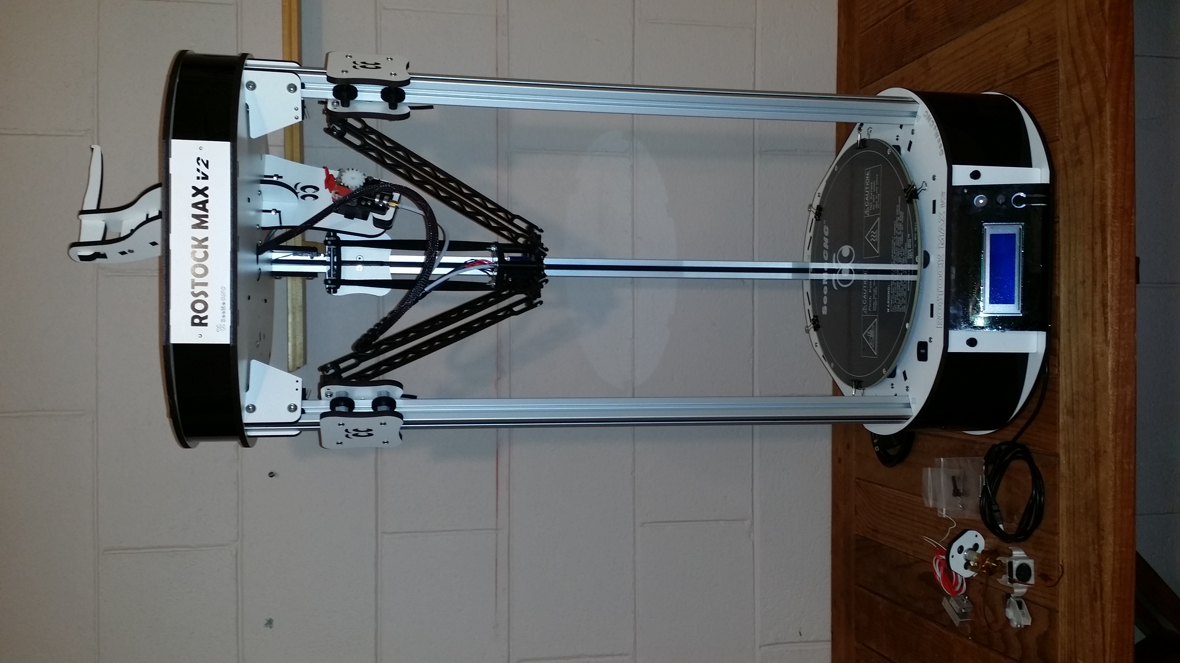 Been thinking of selling my Rostock Max V2 for some time as I don't use it as much as I planned. The printer has very little use. The hotend has been upgraded to the E3D V6(stock hotend is included). It has been a great machine but its time for someone to use it more than myself. I'm located in Wisconsin but can ship if the buyer wants to pay shipping costs or meet somewhere if your local. I would be looking to get 850 for the machine. I will also include any spares/filaments I have since I won't have a use for them. Any questions feel free to ask. I will be uploading pictures this evening.