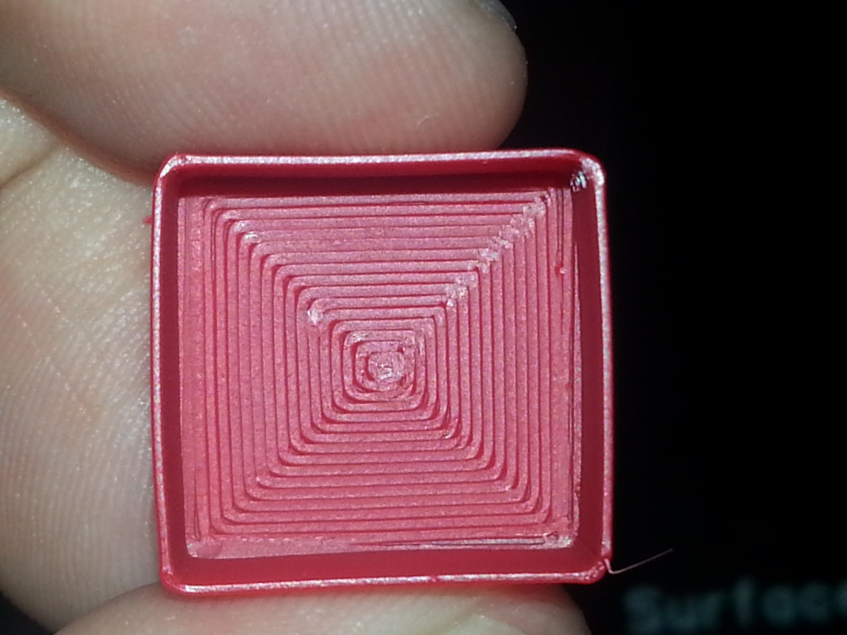 What's not obvious is the general effect it has on other aspects of quality here is the profile of the 100 85 and 75% cubes. Note the unevenness and generally poor layer alignment of the 100% cube, it's worse in Slic3r than most other slicers because Slic3r only prints perimeters inside to out, pretty much guaranteeing that the outside perimeter is displaced by extra material in the inside perimeter.