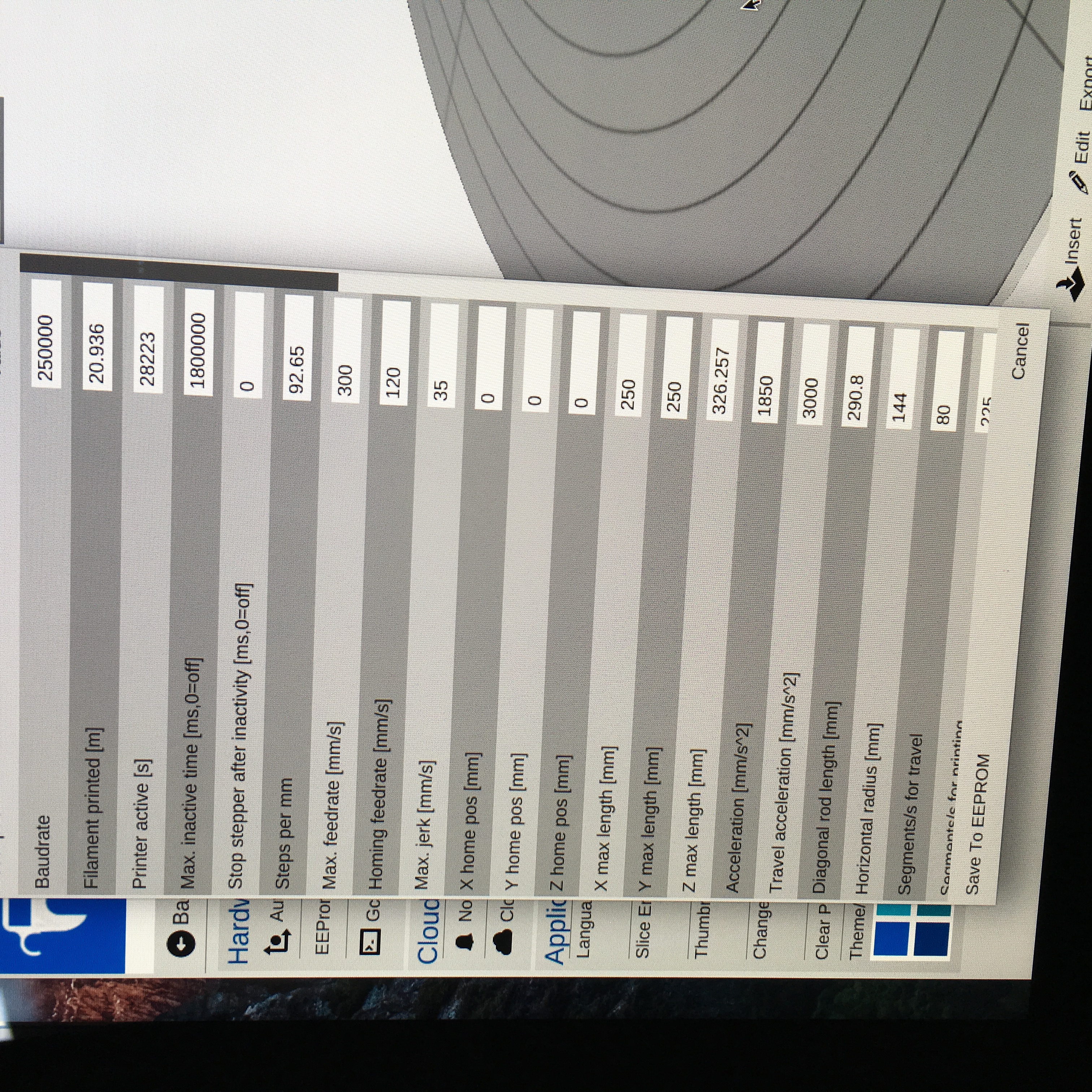 I had searched and have already double checked the diagonal length setting. I'll attach a shot of my eeprom settings.