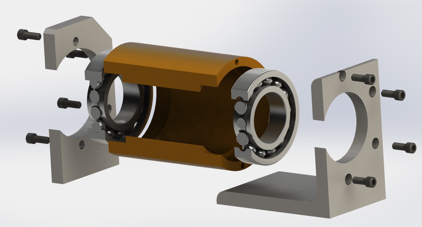 The new iteration 3 headstock is a lot more simple and easy to machine and assemble compared to iteration 2. It should also be much more rigid and strong since it has so few pieces. Iteration 2 had two separate bearing seats, each of which would be positioned on the XY plane of the headstock, then locked in place with bolts. The bearings would be seated with thermal expansion in an aluminum tube.