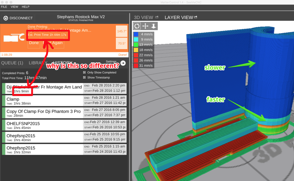 1. estimated printing time seems often longer than the real printing time. See the attached picture: 1hr 9min real printing vs. 1hr 44min estimated. Why is this so much different?