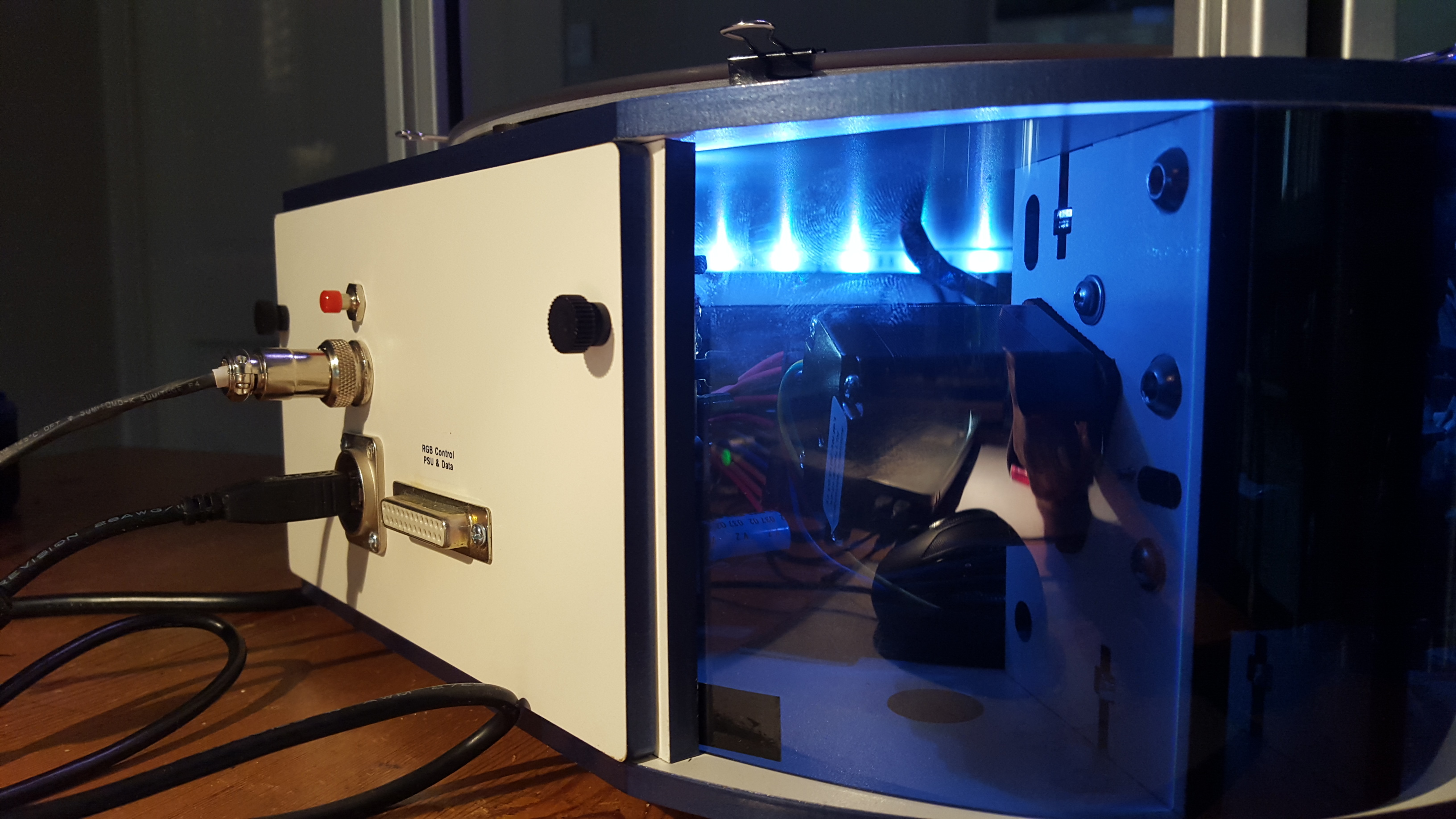 On the side (by the USB port) is a 25 way ‘D’ plug. This is wired for remote control of the RGB leds + 12v for remote equipment. I will supply a diagram of the wiring if you want to use it.