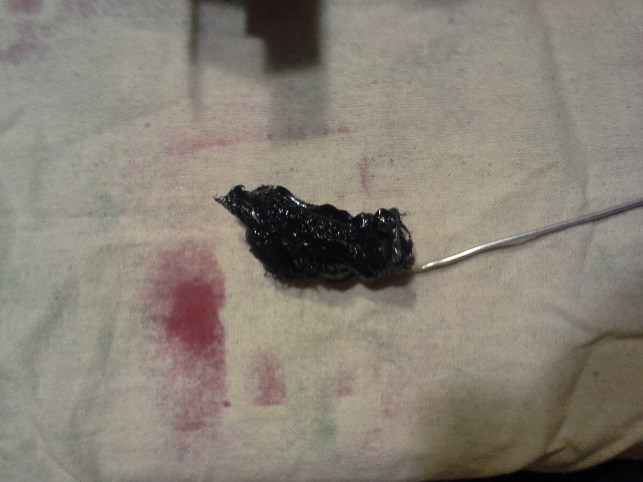 I though, No problem, I'll just cut that down some and soak it in acetone. Well, I didn't do too great there, because I managed to nick the edge of the tubing inside the hunk (Didn't even notice it).
