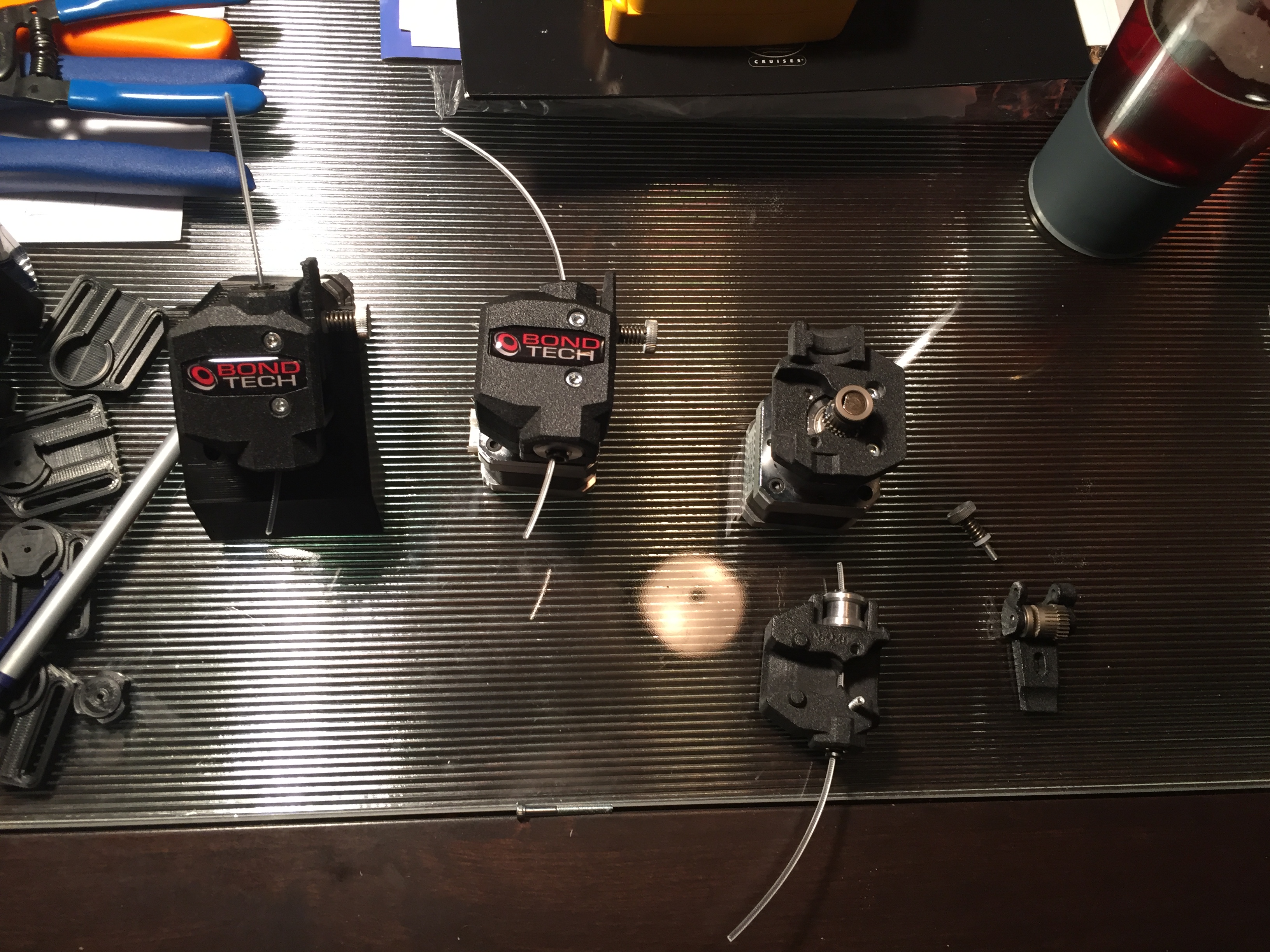 Bond Tech Extruders for the Diamond head assembled. Right now I'm printing out the other two mounting brackets.
