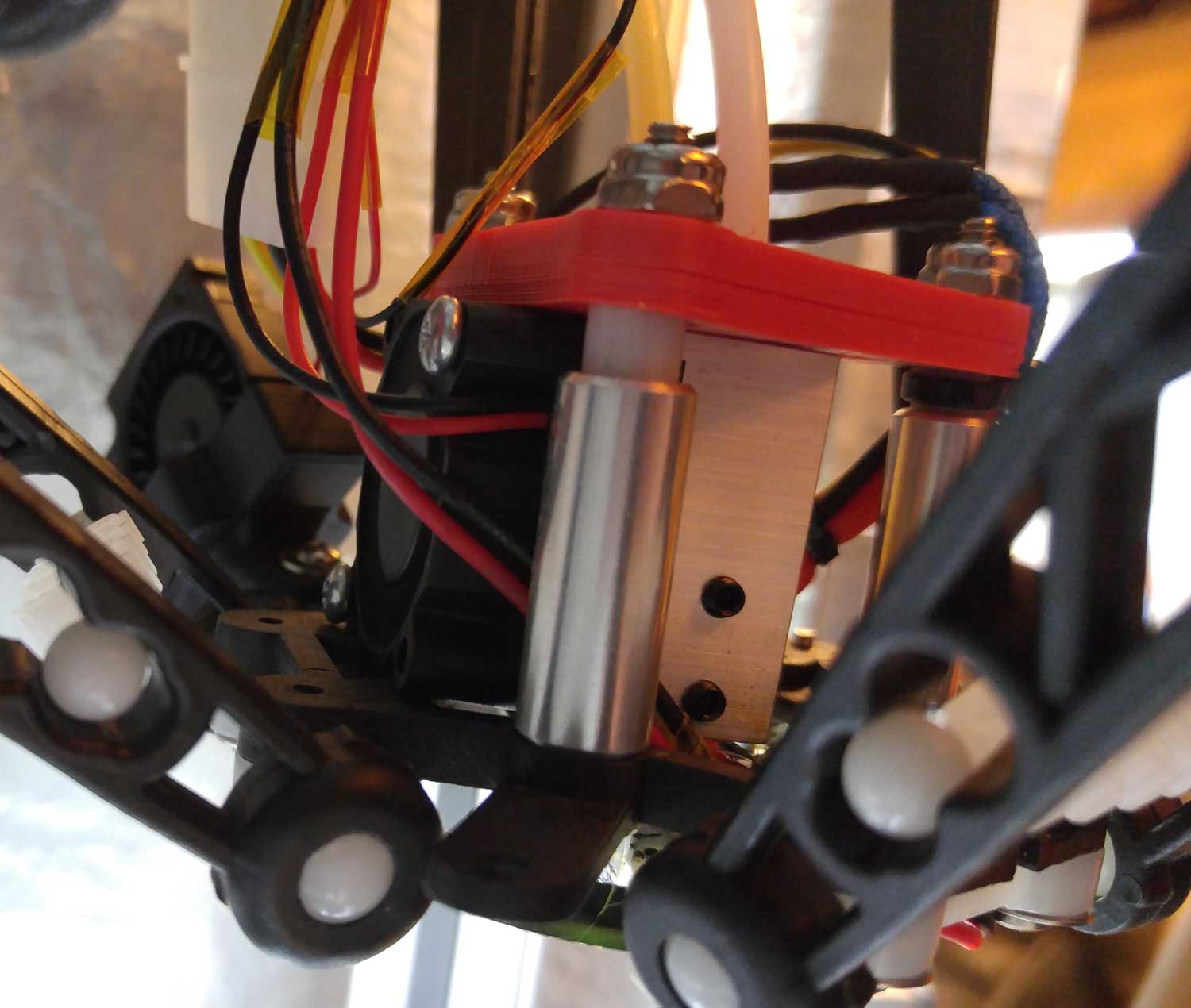 2) Extruder nozzle is very near - just slightly below - center of actuator plate, minimizing nozzle position play during printing.