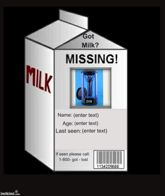 For those of you who visit the forum directly, bypassing the SeemeCNC Home Page, over the weekend, the Eris showed up on the home page for sale, but is listed as "Sold Out". If you go to the 3D printers page, you can see it as well. Clinking on the Eris brings up it's very own product page.