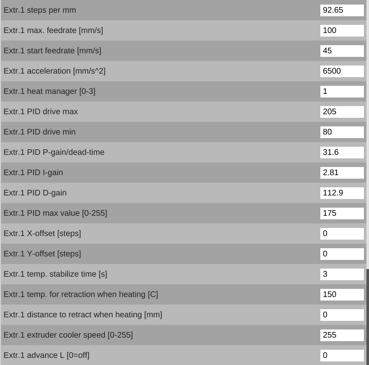 So I'm giving up. I ordered a 40w heater and a threaded thermistor and will be rebuilding the hot end shortly. My max temps keep getting lower even with the increasing eeprom settings. Has to be a damaged resistor or something. I keep printing and watching the temp drop 20 degrees as soon as the base layer is completed. It takes about a minute then I have to pause and wait 5 mins for the temp to rise and a minute later I'm back down and pausing again. I'm hoping the new gear gets me over this hurtle.