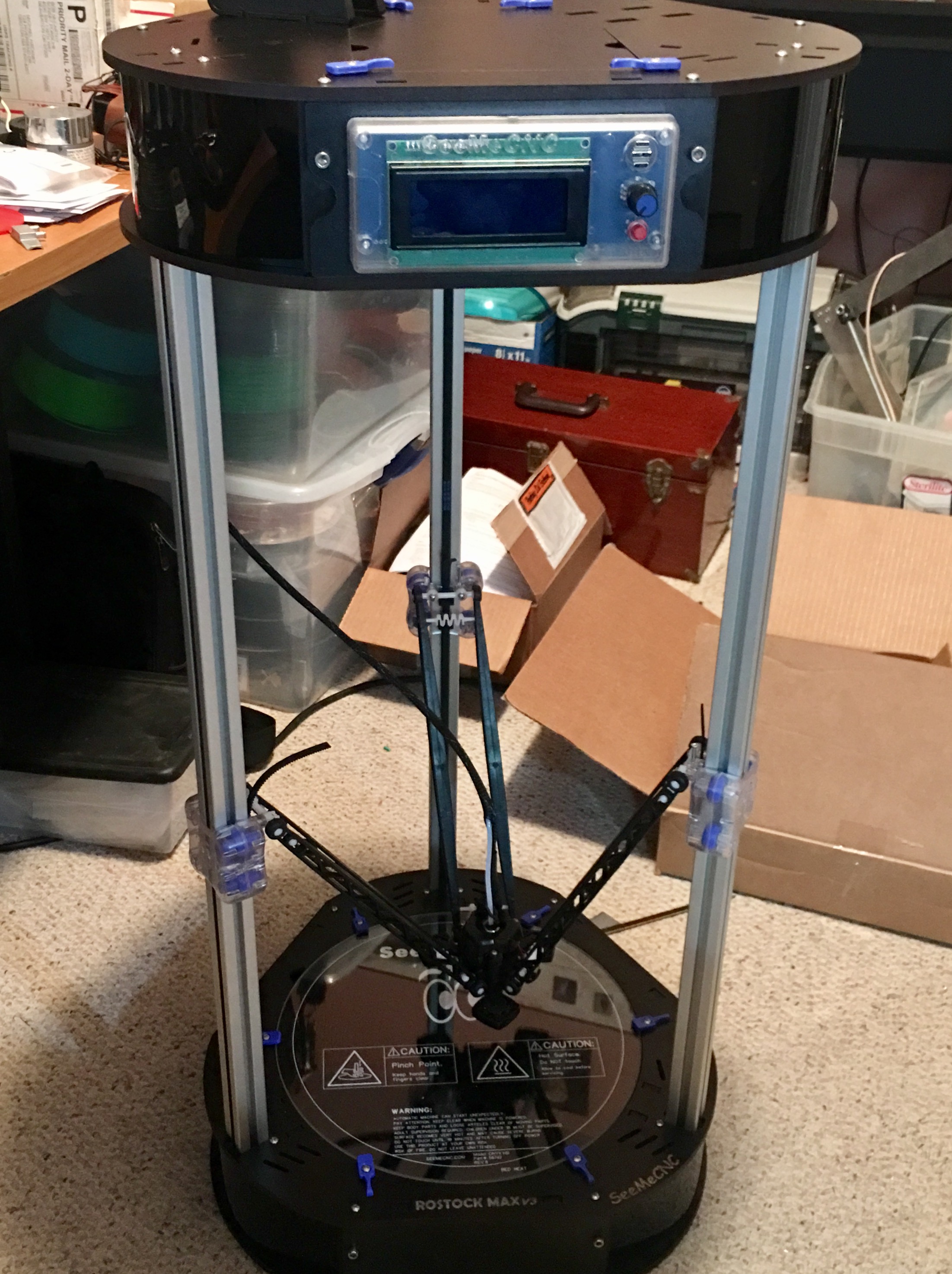 I don't think my "delta bias" or the fact the my V3 was partially subsidized by SeeMeCNC is of significance to this review, the Rostock MAX V3 is a very capable printer at a great price and value for either the kit or pre-built printer. As background, I built one of the early V1s and modified it over the years with a state of the art controller and firmware, high performance Bondtech extruder, upgraded carriages, arms and effector, a highly reliable and capable E3D V3 or Kraken hot end, PEI print surface, heat dissipator and both 12 VDC and 24 VDC power supplies to name a few. You can read my Ultimate Configuration if you want the details on the "what's and whys". This upgraded machine is dialed in and completely reliable. It is a workhorse that prints very high quality parts day in and day out.