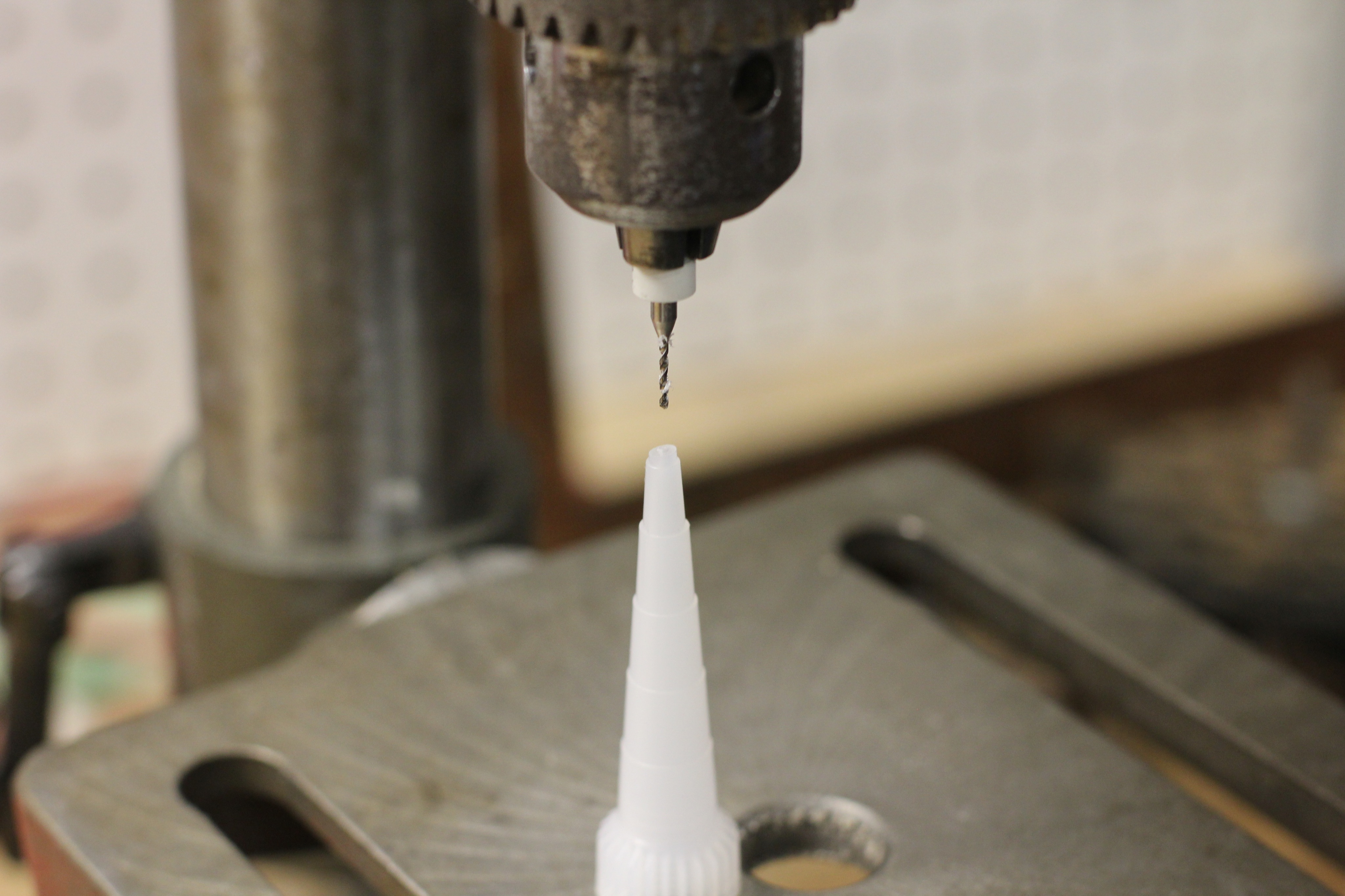 - Delta file in a drill press. (Sorry about the white balance.)