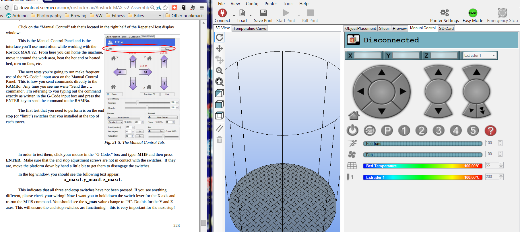 I downloaded Repetier and it does not look like the control panel in the manual. My main issue trying to find here to insert the G-code for auto tuning codes. I don't how to generate the Kp, Ki, and Kp's for controlling the ramp up and overshoot numbers for the hot end and hot bed controls. Can some one help with that? I've taken everything up to the temps in the manual, but I don't know how to tune the temps with the missing G-code box.