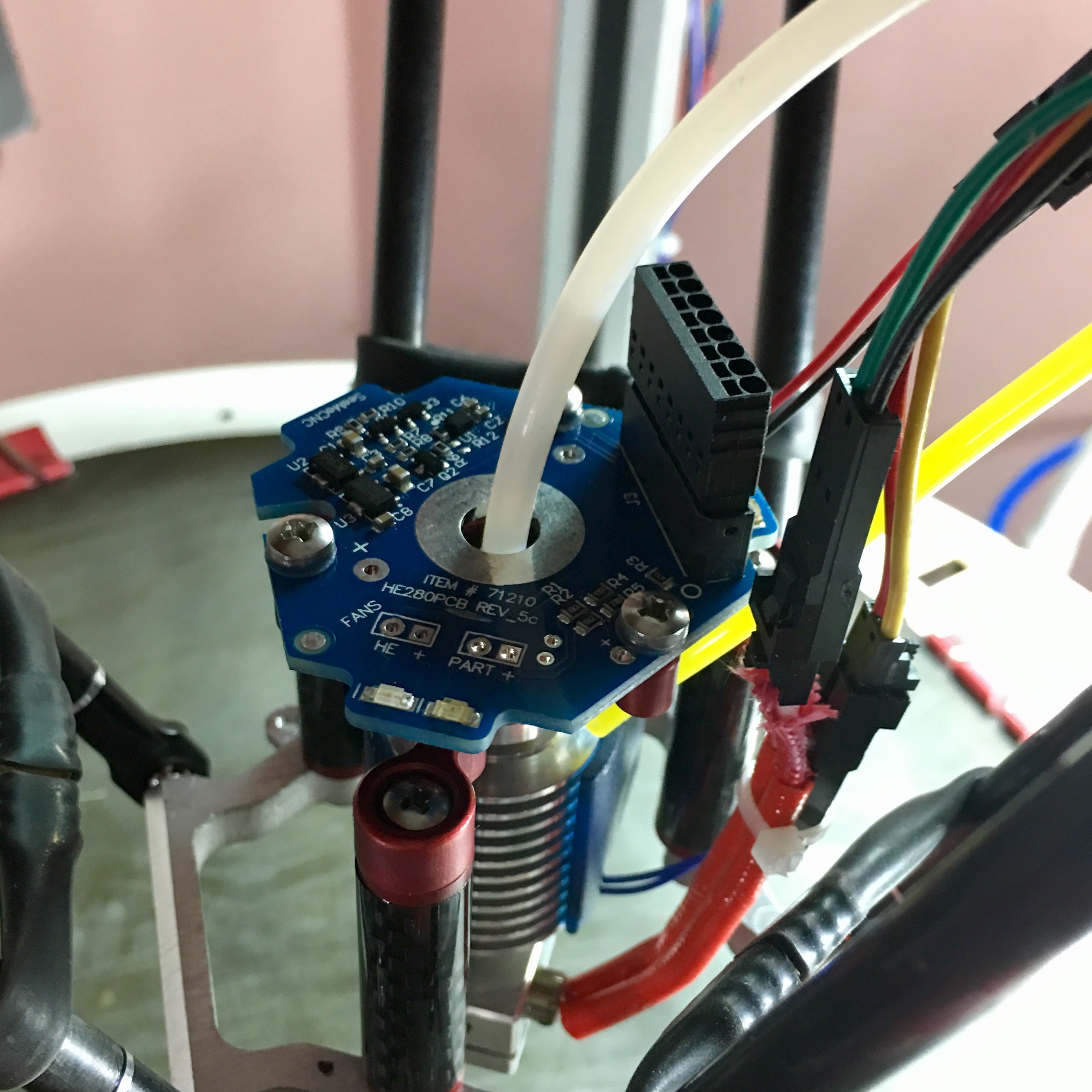 The dimensions of the board would be useful too, since I don't know how it mounts. Does it insert at a right angle to the HE280 board, or stacked?mhackney wrote:Basically. It will need the HE280 connector on one long edge and pads for the 8 wires on the other. The processor chip and 5v regulator (maybe depending on processor) and an LED to show the touch and relay messages on startup. I'm also thinking a row of four 2 pin headers to use for setting the sensitivity with jumpers and another to select NO or NC behavior. I can write this up and also make a drawing of the basic format and how I'd like to attach it between the whip and hot end.