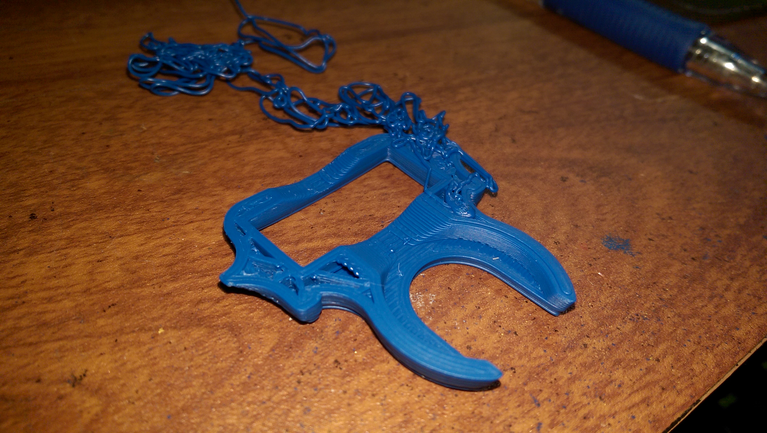 Here are all three of them together. This is the first one I tried. On the left side, top of the fan opening, it appears as the opening was coming back together something went wrong and the extruded material seems higher than the rest of the piece. I am speculating the print head caught this raised section and knocked the part off the bed. This is the second attempt and it looks very similar. I am using the settings straight out of the box, or as in the documentation. I was able to print the calibration box that MatterControl loads up by default. It has some minor glitches, but nothing like this.
