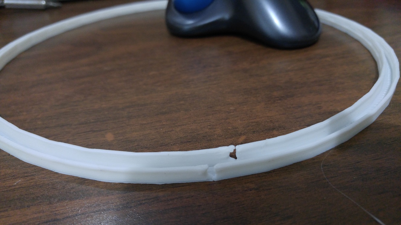 It has been printing nearly flawlessly (it is 2 1/2 yrs old). But, just recently I have had quality issues that I haven't been able to figure out what the cause is. I have attached a photo. [See Below] The part is a simple channel ring. The wall thickness is about 1.5mm I am showing this just as example, it has similar fails on other parts also. I have printed many of these in the past, same file, same settings, no problem. But, recently there is this GAP.