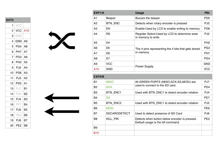 I was looking at it and it seems to me that if I change the MISO, SCK, SS and MOSI to PJ7, PD4, PE7 and PE6 respectively in the firmware, I could wire the LCD to board much more easily all through EXT2.