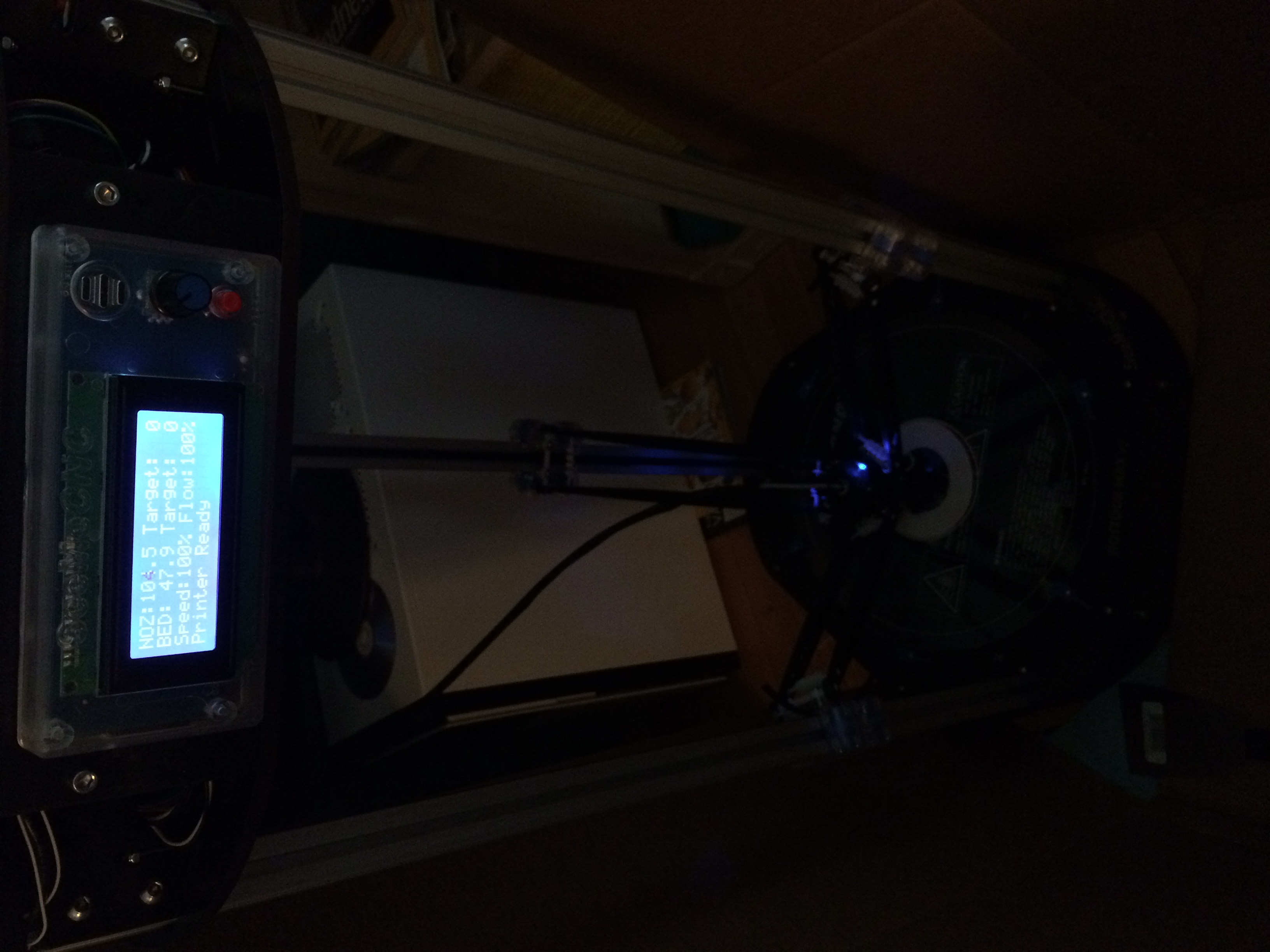 Bed heat plummeted to sub 60 after 2% of the print despite heat LED being on and set at 95. Approx 0.2 deg per second. I can hear snapping and popping of the raft - part must be cooling enough to allow relative motion of the coarse extrusions and delamination from the bed. Temperature at 54 after several minutes (3% printed). This print is at a similar location as the last time it failed (which was also the first time I tried it). A few mins later, bed at 52, still 3% printed on lcd.