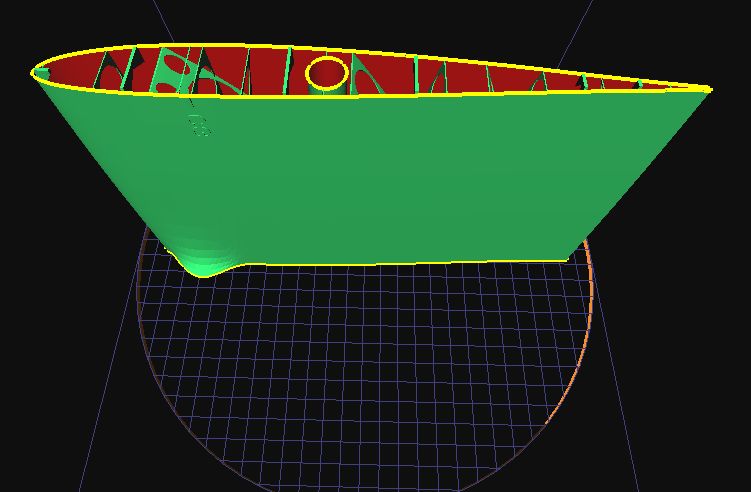 Here is what a mean; from Kisslicer it doesn't seem to know about the interior ribs/spars. When it generates the G-code it creates a segmented perimeter with loads of retracts on the filament and nothing on the interior. I can't figure out what I'm doing wrong.