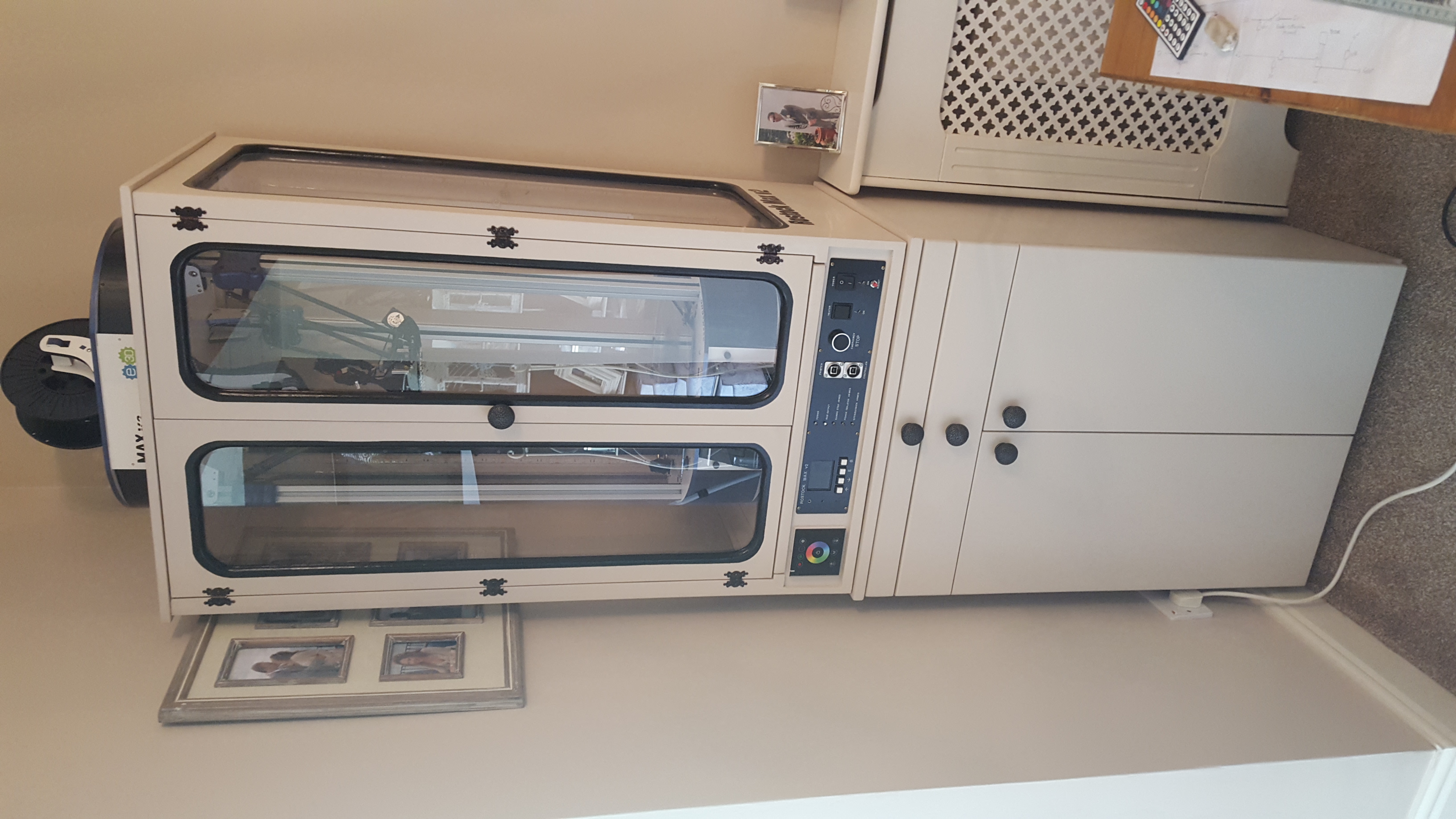 The cabinet works off this Max V2. If you are handy, you could alter your RoStock to work with enclosure. Arduino programming would be a handy skill to have.