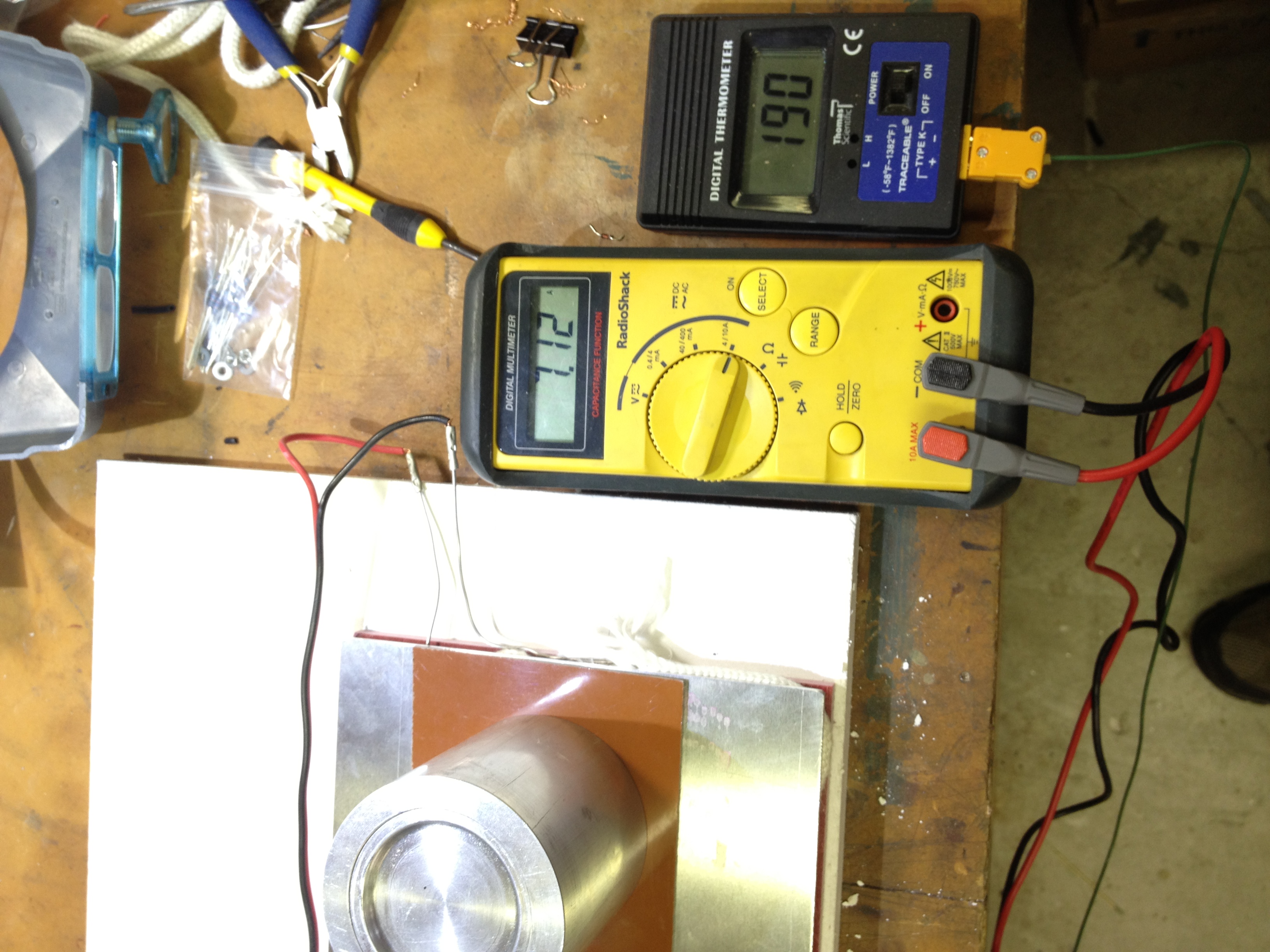 This has the 1/8" phenolic under and .1" aluminum plate on top (7" x 7 1/2" to fit the H-1 table). The nichrome gets very hot but the warm-up time was long. I need to do some calculations, I suspect I was shooting for a top end of 225°F in my calculations and with convection cooling I am probably going to wait all day to get there.