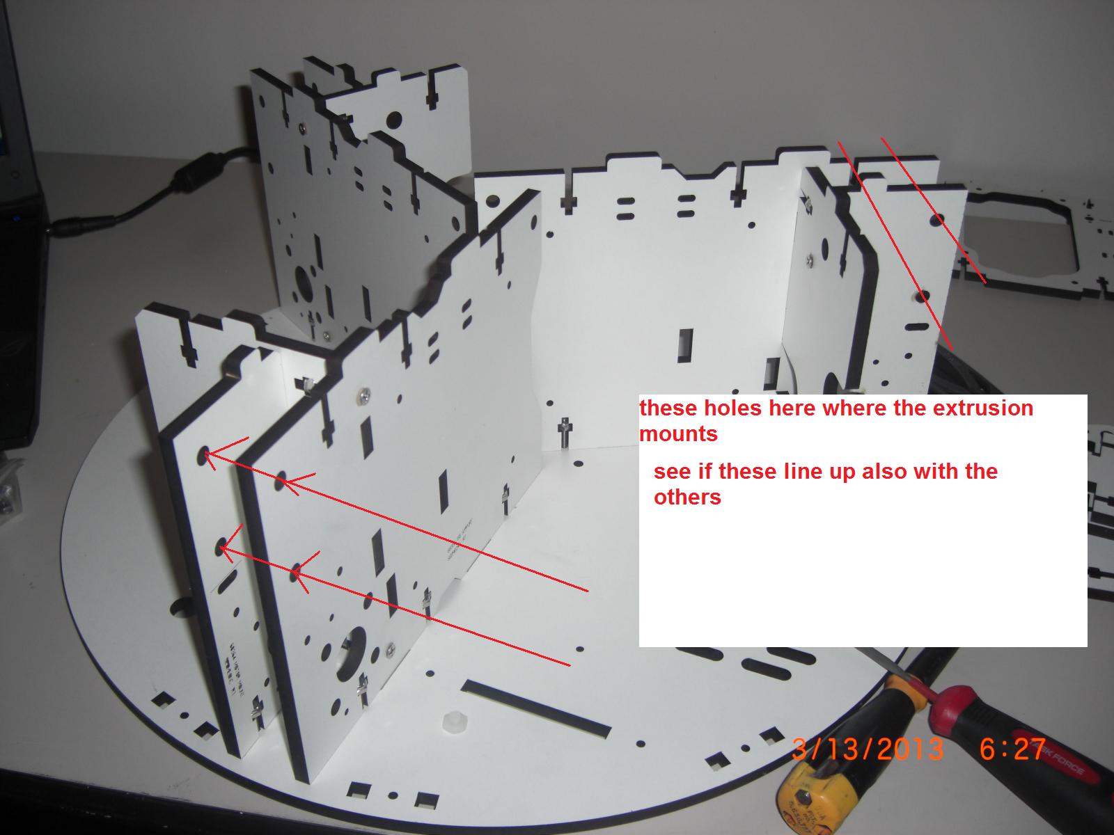 I put the base all together and I did have to file down the nut slots on a few spots. But after putting the top part of the base on, I noticed that it wasn't flat. I think I'm having the same issue as Cambo3d. Take a look at the pictures.