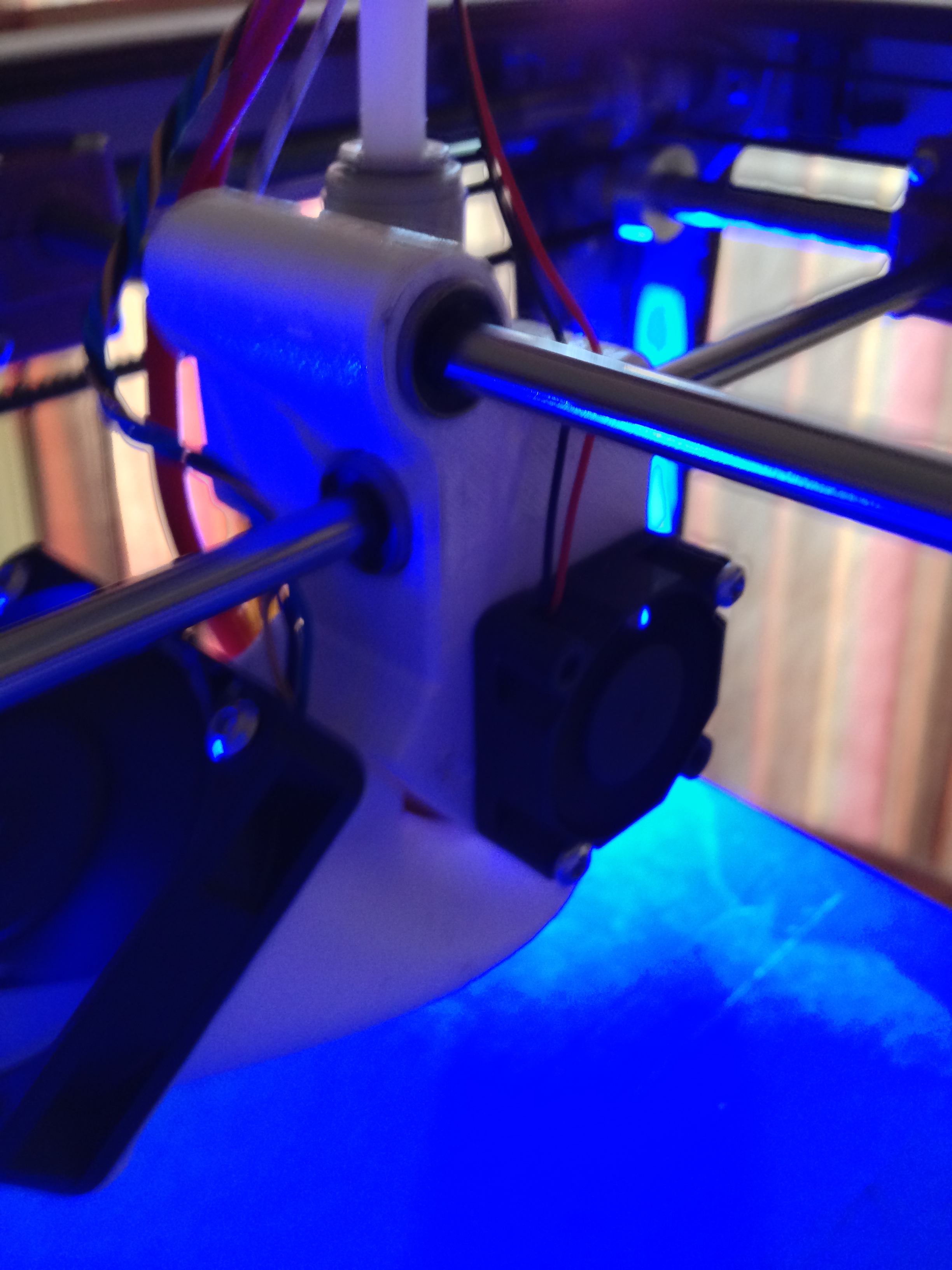 I have a Greg/Wades on the back and 2 fans on the E3d, the stock cooling the heat sink, and a 50mm for part cooling with a fan duct.