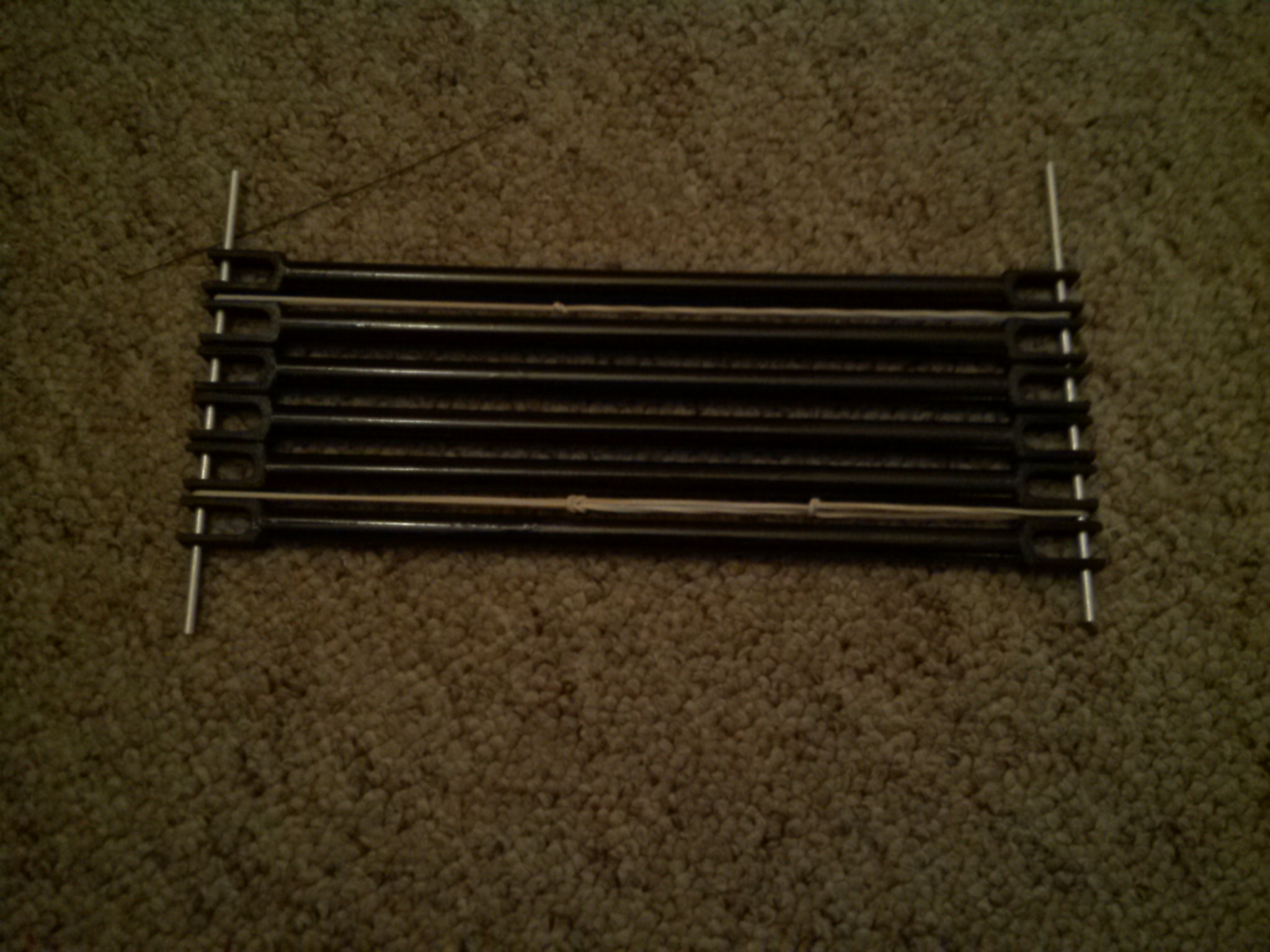 These sturdy stake based arms should be alot sturdier than the original arms. Be careful not to bend the axles though or you may need to get some more axles. If that happens, maybe the 1/8"x6" (3.2mmx152.4mm) aluminum round bar (item 884465 from Lowes may work after sticking it in a drill/dremel and using sand paper on it.