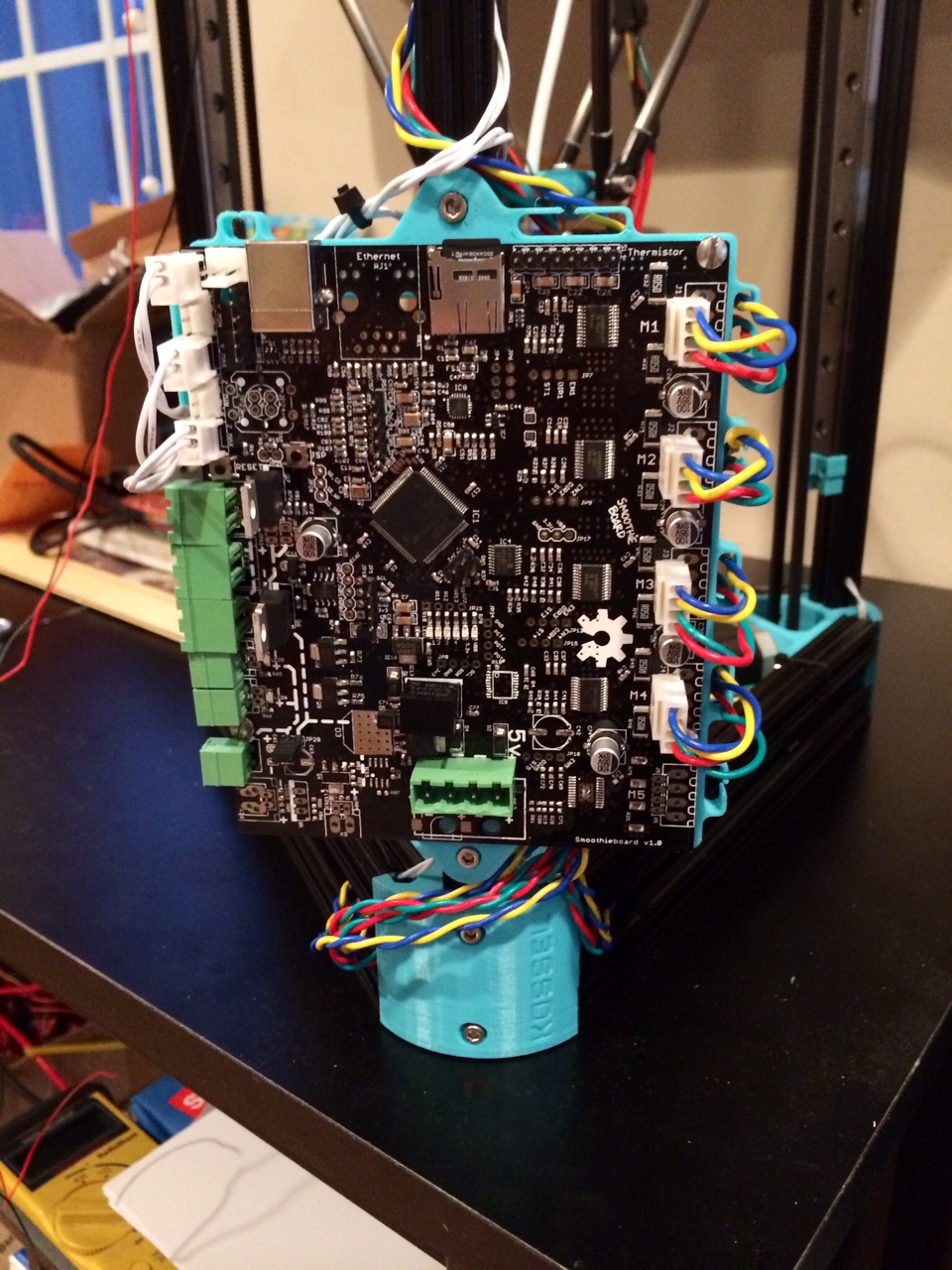 Here's my contribution to the kossel talk. I'm using the x5, way fewer options and possibilities but much smaller size.