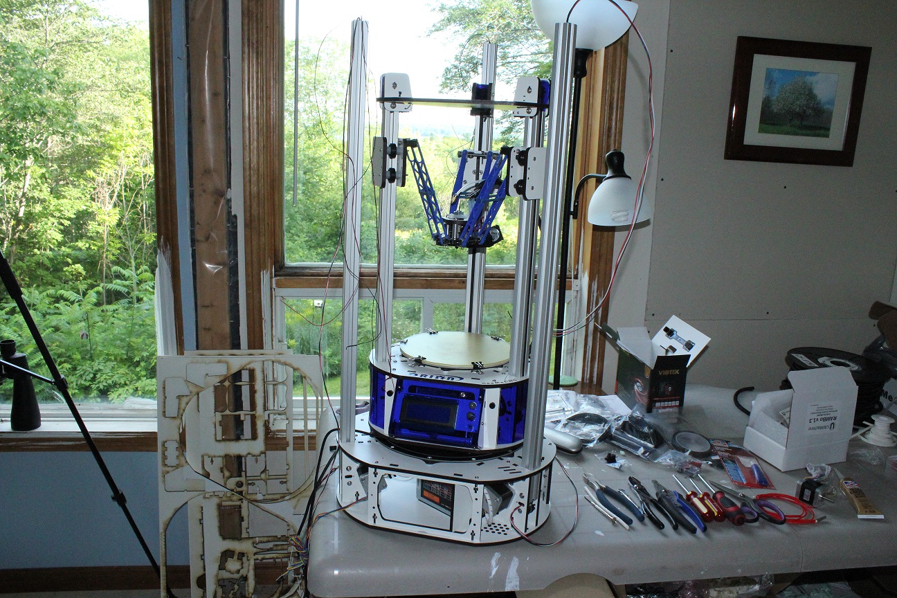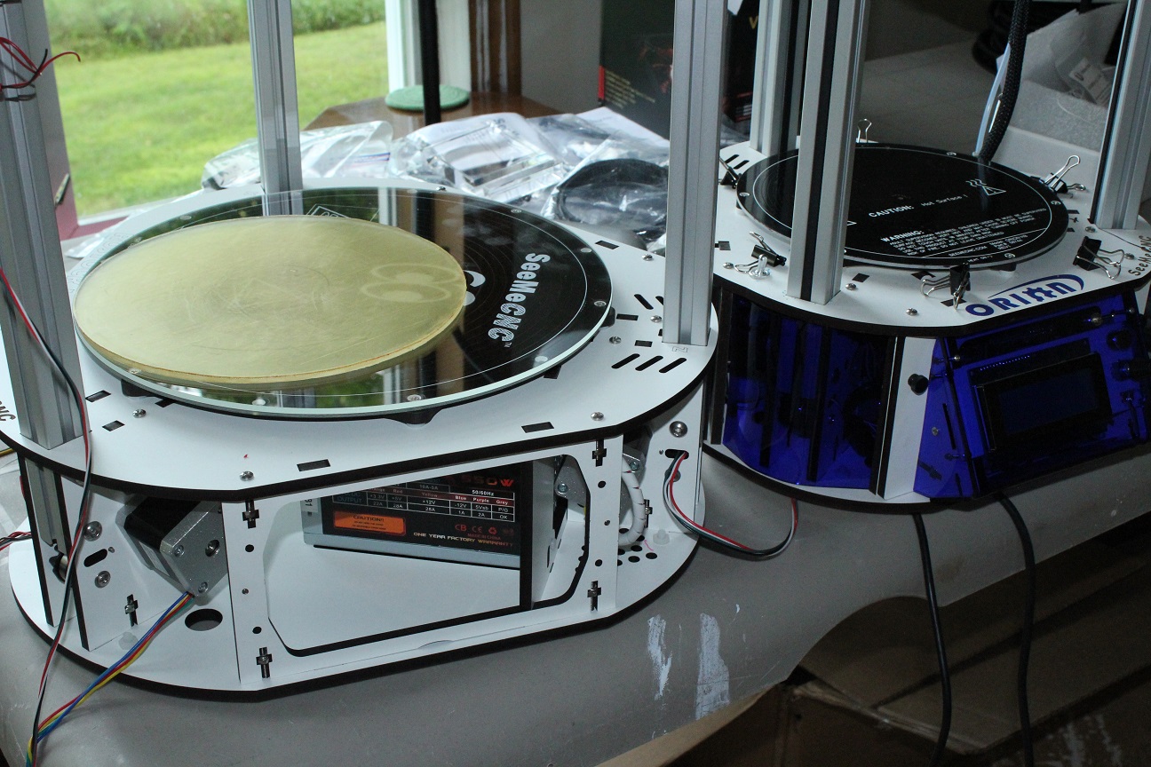 Hi, I was outgrowing my Orion so decided to build a Max V2 instead of converting the Orion. The reason for the post is show others who are considering an Orion or Max the actual size difference. When buying the Orion I was a little overwhelmed with the thought of build the Rostock Max from a kit so I stayed with the Orion. The build is easy and straight forward thanks to the great manual and precision cut parts by SeeMeCNC. I'm glad I didn't hack up the Orion to make a single bigger printer. Now I have 2 and cost wise the 2 combined are still cheaper then a Makerbutt 5th generation.