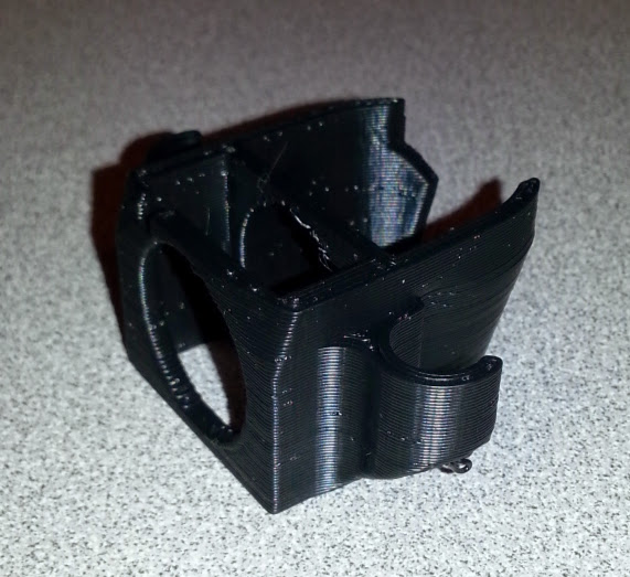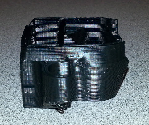 Playing around some more. Learning just how badly ABS and PLA will curl and warp on larger parts. I was getting cocky and starting to print a few things in PLA at high speeds 75-100mm/s with success. Then a project came up using thin surfaces and I fought lots of warping and corner lifting for a few days. Could not seem to find the temps and cooling combination that would give good results. Of course the answer was not to be found there at all, but instead needed much slower printing, and matching the infill and perimeter rates so that one wouldn't distort the other.