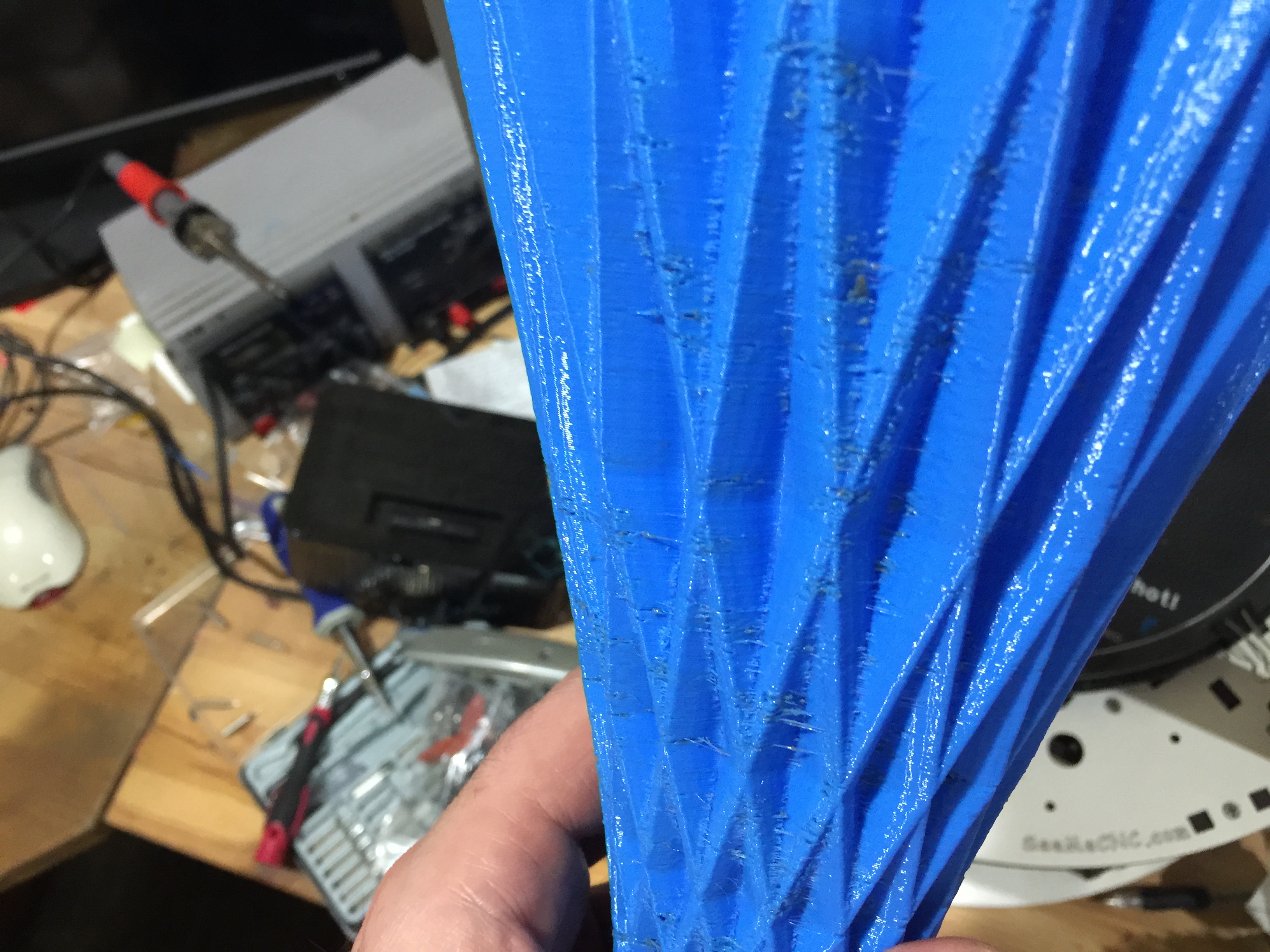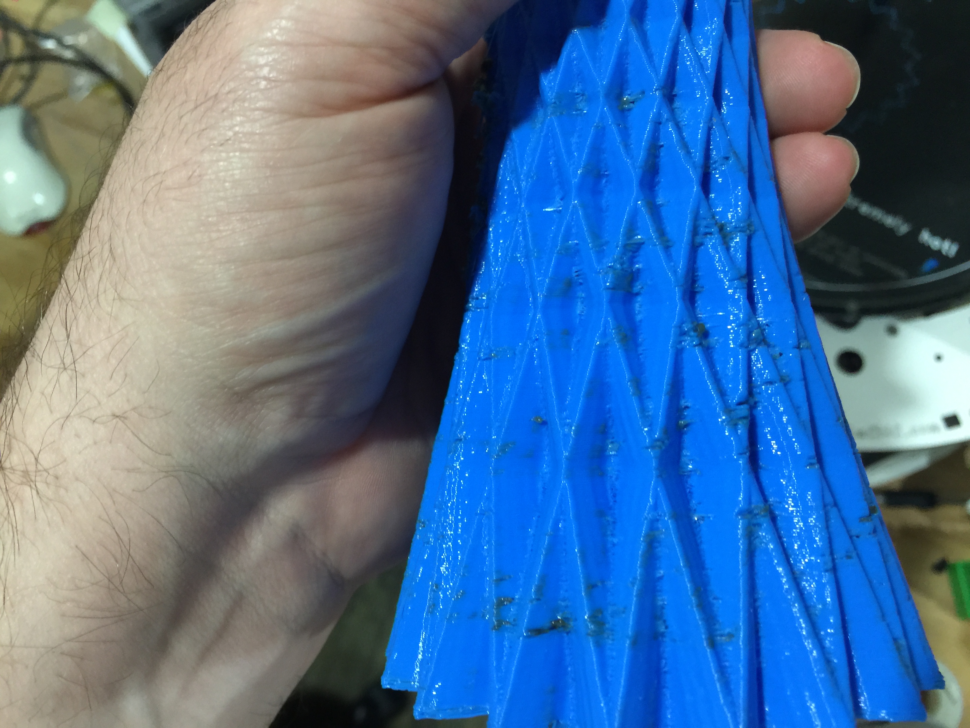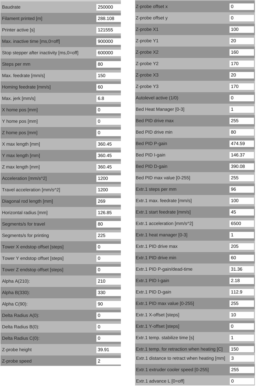 So here's my back story. I got the RostockMax V1 almost two years ago and I built it and got it printing really nice. Then I got cocky and starting tweaking left and right, changing settings left and right. then one day it just stopped being able to extrude during a print. It would extrude filament just fine but when I went to print it would stop working. I cleaned and checked everything mechanical. I verified temps, replaced gears, adjusted the extruder steps and no luck. So It sat there collecting dust because I was lazy and I had 4 other printers also in use so I was in no real rush. Well I decided it had collected dust long enough and it deserved to live. So I upgraded the firmware from .80 to .91 and starting going through my EEPROM settings and getting everything back to as close to default as possible and the same problem starting happening again. It took awhile but somewhere along the line I set retraction to 6mm which is way too much. Boom! I changed it to 3mm and what do you know it starts printing again but with globs all over the print. I feel like I've gone through all the EEPROM settings and configured everything back to default. This print is a simple vase using the vase setting in mattercontrol with zero infill. I'm printing at 210c and 80mm. I've lubes the filament with some vegetable oil and replace the PTFE tubing and it doesn't slip at all. I've attached a screenshot of all the settings. I'm running fully stock configuration, extruder,RAMBo. I'm using PLA so I expect some stringing but the globs should not be there. Any thoughts?