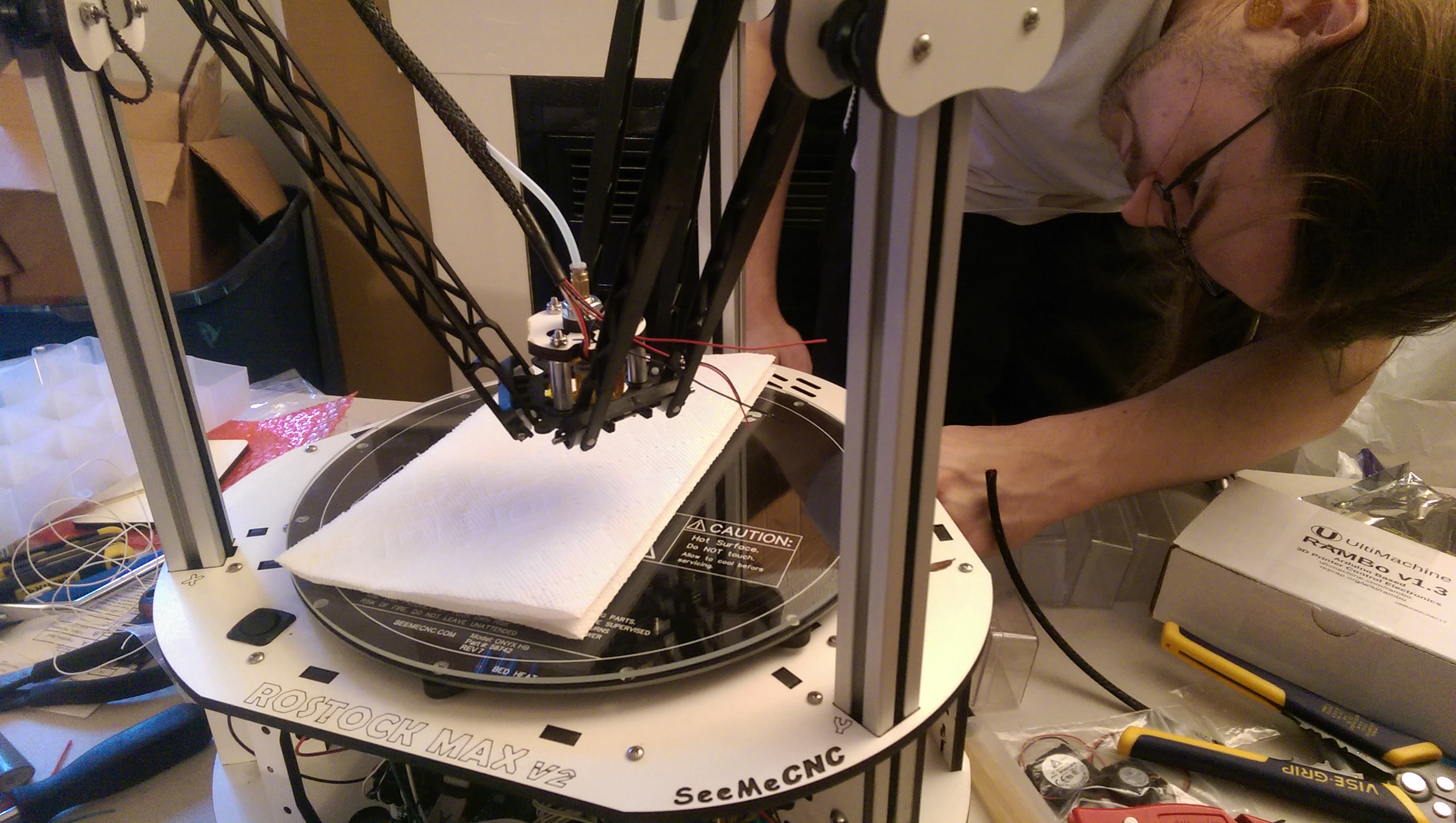 This is my first machines, and therefore my first build thread. I received my Rostock kit last weekend, and began the assembly promptly. I took pictures along the way, but did not stop to start this thread, I was too excited. So here are the pictures from it, since I have now completed the assembly and am having trouble with the printing (which I will show at the end).