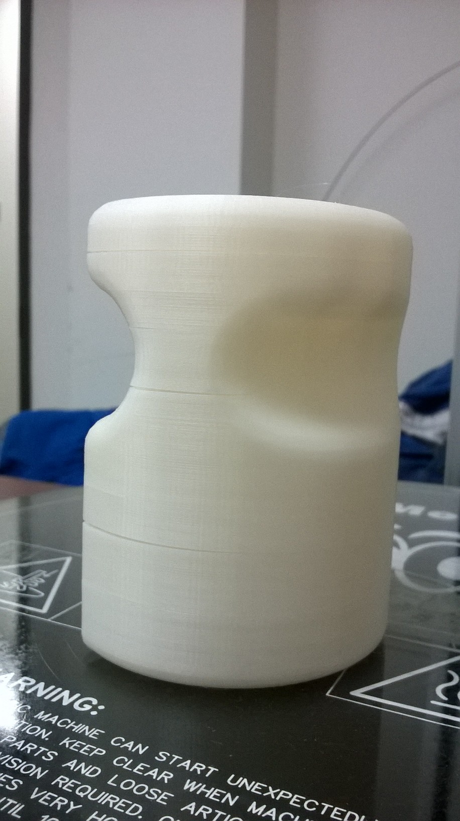 We have a recently built Rostock Max V2, which has made 4-5 parts so far. Everything is looking pretty good in the quality of the parts. Yesterday I printed the attached pics, please notice the de-bond between a few of the layers. Do you have a suggested tweak that would prevent this, to create a fully uniform layer? I am not sure what to suspect, as I have read that the Delta configuration can sometimes be a hard-to-detect initiator of some of these problems (binding, squareness of posts, ujoint friction, etc).