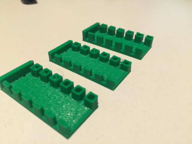 The ooz-tests photo were all using the exact same settings except for changing the retraction from (lowest) 0.3mm, 0.5mm, and 1.0mm retraction. Temp for all was 200/60.