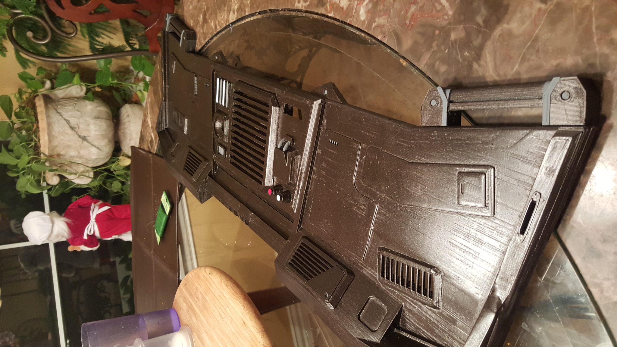 So, I finished the job and sent the console to my brother. It arrived last night and he was eager to get started with the electronics so he jumped right in. We are going to hook into the games sound system and log files to send the lighting commands to the various LEDs (he's using a PIC board he designed to control it). I had not had the chance to see it "lit up" in real life, but I saw in my head what it would look like with the LEDs. My brother did not disappoint me and I think it looks great. This is likely going to be the largest print I will ever do with the printer, requiring easily 200 hours of print time and countless hours modeling and researching the games layout of the console for this particular ship type.